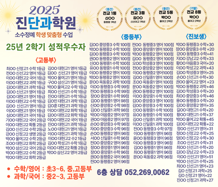 2025 2학기 성적 우수자 수고하셨습니다. 수학/영어/과학/국어 단과 전문입니다.