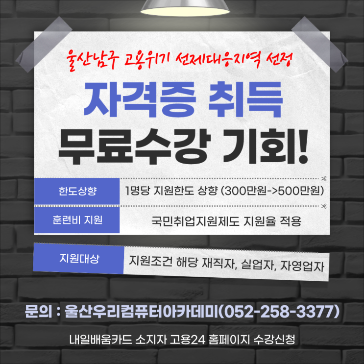 울산남구컴퓨터학원 남구지역 3개월이상 거주시 자격증과정 무료수강 기회!!
