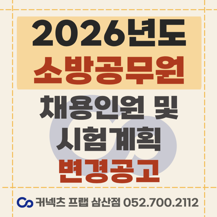 2026년도 소방공무원 선발인원 및 시험계획 변경 공고 [울산공단기][울산소방단기][울산관리형독학관][울산공무원학원]