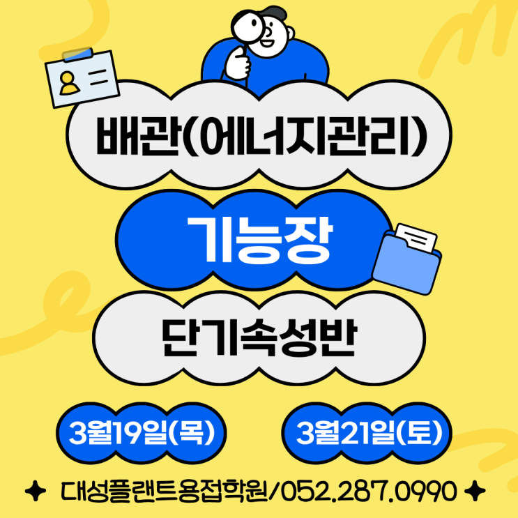 배관기능장,에너지관리기능장 실기 작업형 단기속성반 부산울산경주대구포항양산 자격증특화학원/2일특강반 안녕하세요 부산울산경주대구포항양산에서 자격증 특화학원으로 대성플랜트용접학원입니다. 오늘은 2026년 기능장 시험 재도전을 준비하시는 분들을 위해 배관(에너지관리) 기능장 단기속성과정을 안내드릴려고 합니다. 본 과정은 이미 한 차례 이상 시험을 경험하신 분, 이론은 알고 있으나 실전 감각과 연습이 부족해 아쉽게 불합격하신 분을 대상으로 한 연습 중심의 단기 집중 과정입니다. 배관(에너지관리) 기능장은 기본 이론보다도 시험장에서의 작업 순서, 시간 배분, 실수 관리가 합격을 좌우하는 시험입니다. 이번 단기속성과....... <img src="https://blogthumb.pstatic.net/MjAyNjAxMjNfMjk1/MDAxNzY5MTUwNDAzNDY3.d3qWAfz0fo0dTE00I9Kg0p5SDeqxofHGs7IOAOF8lHUg.qFQY3j8zt3uIWR0Psru1djdmsmCu8atoefGueOA7Mjgg.PNG/1.png?type=s3" />