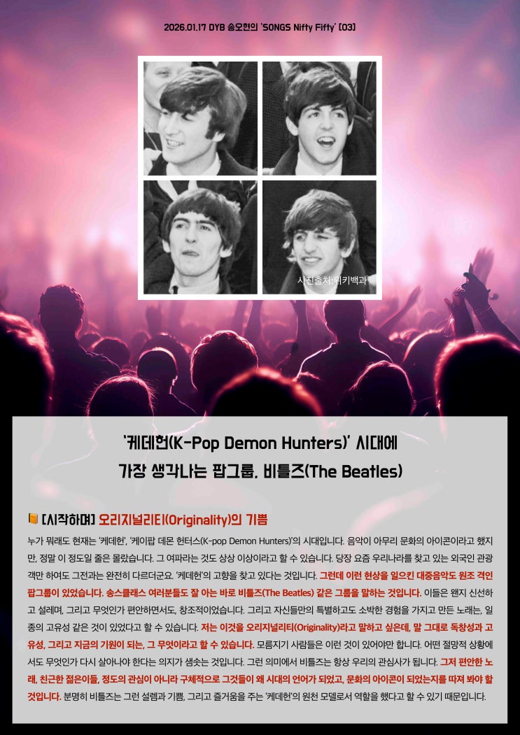 2026.01.17 DYB 송오현의 ‘SONGS Nifty Fifty’ [03] : ‘케데헌’ 시대에 가장 생각나는 팝그룹, 비틀즈(The Beatles)