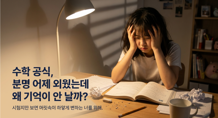 "아, 그 공식 뭐였더라... 분명 어제 외웠는데 기억이 안 나!" 시험 시간만 되면 머릿속이 하얗게 변하는 경험, 혹시 해본 적 있어? 연습장 까맣게 칠해가며 달달 외웠는데 문제만 조금 바뀌어도 손도 못 대는 그 답답함. 나도 다 겪어봐서 그 마음 너무 잘 알아. 솔직히 말해서, 수학을 역사 연도 외우듯 암기과목처럼 공부하고 있다면 지금 당장 그 방법을 멈춰야 해. 그건 밑 빠진 독에 물 붓기나 다름없거든. 오늘은 형설학원에서 우리 아이들과 어떻게 수학을 '이해'하며 공부하고 있는지, 그 찐 노하우를 살짝 풀어볼게. 이 글을 다 읽고 나면 수학을 대하는 태도가 확 달라져 있을 거야! 파이팅! ✨ 암기의....... <img src="https://blogthumb.pstatic.net/MjAyNjAxMDVfMTgg/MDAxNzY3NTUzMDkwMTM1.531TEo7lkaTiN-yArENJLYQdeatfj68HhGm3bWGaGOAg.Oyh3jqa-GCQmgwYZSaOHHIl2EVR4AnHWvgnJecoTkDYg.PNG/image.png?type=s3" />
