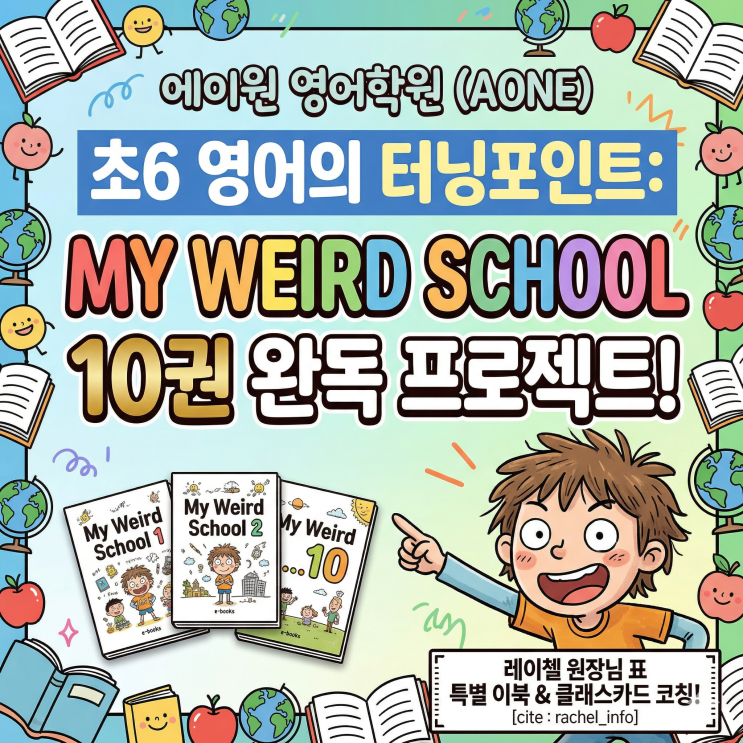 안녕하세요, 성남 수정구 중원구에서 17년째 아이들의 영어 성장을 책임지고 있는 에이원 영어학원(AONE) 원장 레이첼입니다. 오늘은 우리 지역의 단대초, 상원초, 은행초, 중부초, 성남동초 6학년 학생들을 위해 준비한 아주 특별한 프로젝트를 소개해 드리려고 합니다. 바로 영어 원서의 베스트셀러, My Weird School 시리즈 10권 완독 챌린지입니다! ★ 초6 영어의 터닝포인트: 'My Weird School' 10권 완독 프로젝트! 초등학교 졸업을 앞둔 6학년 시기는 중등 영어를 대비해야 하는 가장 중요한 황금기입니다. 이 시기에 단대초, 상원초, 은행초, 중부초, 성남동초 어린이들에게 필요한 것은 단순한 문법 암기가 아니라, 영어라는....... <img src="https://blogthumb.pstatic.net/MjAyNjA0MDFfMjkg/MDAxNzc1MDIxNDAxNzQz.RgvUpNrMnn_atRs-UM7x8aCokq6FvMdULeYHUEmviO4g.YScIBwhEaU_g8Mw2XARn_W_xDNEWll7_-x_iLngJo4Ug.PNG/Gemini_Generated_Image_klhm16klhm16klhm.png?type=s3" />