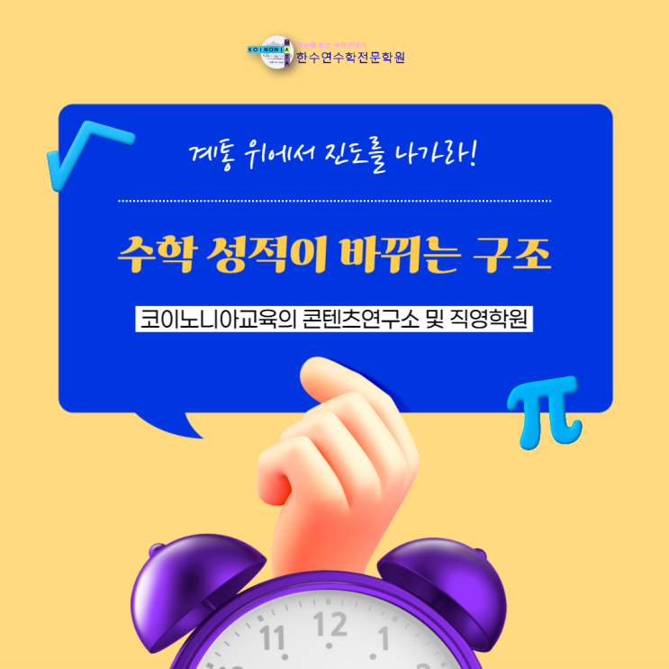 안녕하세요. <한눈에 보는 수학연대기>교재를 연구하고 제작하여 제공하는 코이노니아교육의 콘텐츠연구소 및 직영학원 위례 한수연 수학전문학원입니다. 수학을 잘하는 아이와 늘 “열심히는 하는데 안 되는 아이”의 차이, 혹시 ‘이것’ 하나 때문일 수 있습니다. “진도를 빨리 나갔느냐” “문제를 많이 풀었느냐” 아닙니다. 개념이 ‘연결되어 있느냐’의 차이입니다. 지금도 많은 학부모님들이 ‘선행 vs 심화’, ‘문제풀이 vs 개념’ 사이에서 고민하시지만 사실 더 중요한 질문은 이것입니다. 우리 아이 수학, 쌓이고 있나요? 아니면 흩어지고 있나요? 오늘은 한국 수학 교육에서 가장 뜨거운 주제인 교과진도식 학습 vs 계통수....... <img src="https://blogthumb.pstatic.net/MjAyNjAzMjNfNjgg/MDAxNzc0MjI2NzEzNDg1.jDBBjGC40h-wMEr9xUclI_HrP3A_KcaaXFTFikZsE7Ig.lWs1GtXfAuU7AuJrgtjU8s7gndrD2vB3FjJ4UOzjw3gg.PNG/%C0%A7%B7%CA_%BC%F6%C7%D0%C7%D0%BF%F8-001_%282%29.png?type=s3" />