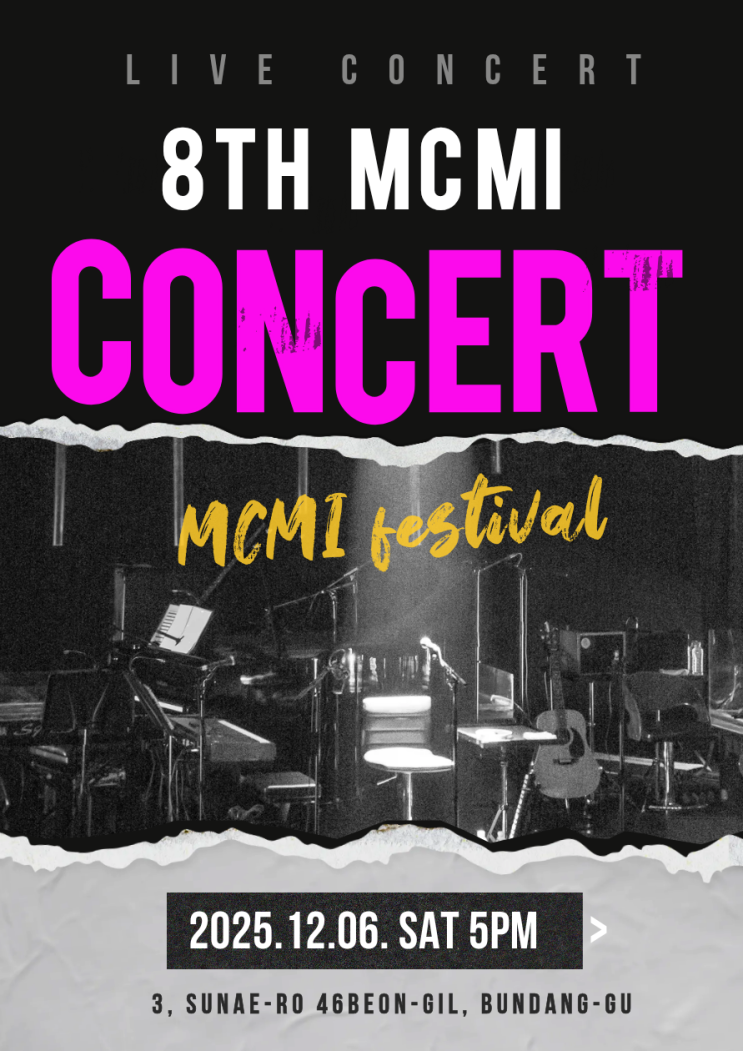 안녕하세요, MCMI 음악학원입니다. 제 8회 MCMI 정기연주회가 성황리에 마무리 되었습니다. 이번 글은 공연의 흐름이나 순서를 설명하기보다는 무대에 서 있던 그 순간들을 사진으로 남겨두기 위한 기록입니다. 각 무대는 모두 다른 분위기였고, 연주 방식도, 표현도 제각각이었지만 모두가 자신이 준비한 음악을 무대 위에서 끝까지 보여주었습니다. MCMI 음악학원은 연습에서 그치지 않고 이렇게 실제 무대를 통해 음악을 경험하는 과정을 중요하게 생각합니다. 사진 속 장면들이 그날의 분위기와 무대 위의 집중감을 조금이나마 전해주길 바랍니다. 저희 MCMI 음악학원은 앞으로도 다양한 무대 경험과 라이브 공연을 통해, 음악을 사랑하는 분....... <img src="https://blogthumb.pstatic.net/MjAyNTEyMjBfNDQg/MDAxNzY2MjExNDY2NjA4.jXgwyL2ReudBfAJmxyA-b-Ok_XL_6tWa5b7BXFHU45Mg.QurWMkehwbp0-M21CT-0lxgN_eCL7QfFFpqlN7ML23kg.PNG/KakaoTalk_Photo_2025-10-30-14-50-36.png?type=s3" />