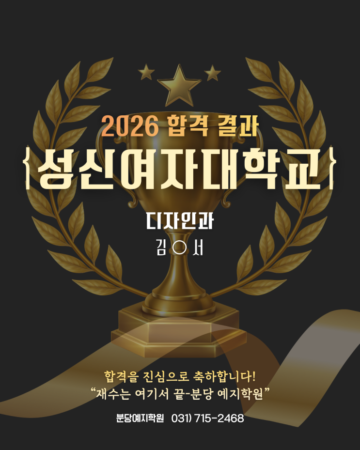 2026년 합격을 진심으로 축하합니다! 정시 발표의 결과가 또 나왔습니다. 드디어 마침표, 그리고 새로운 시작입니다. 그동안 정말 고생 많으셨습니다! 실기장의 긴장감과 수능의 압박감을 이겨내고 꿈의 대학에 합격한 주인공입니다! 재능에 노력을 더해 스스로 증명해낸 값진 결과인 만큼, 대학 생활에서도 여러분의 잠재력을 마음껏 펼치며 더 높이 비상하기를 분당 예지학원이 끝까지 응원합니다. <img src="https://blogthumb.pstatic.net/MjAyNjAyMDRfOTcg/MDAxNzcwMTY2NTg5MDk1.bnnGneqgFnB3AKoV13TerVm9i4k9zyu6vPBOdm48ER4g._wbD5C7TqyzpBcIEM_n4DmBVdy7t76zE8lKhyB257WYg.PNG/1.png?type=s3" />