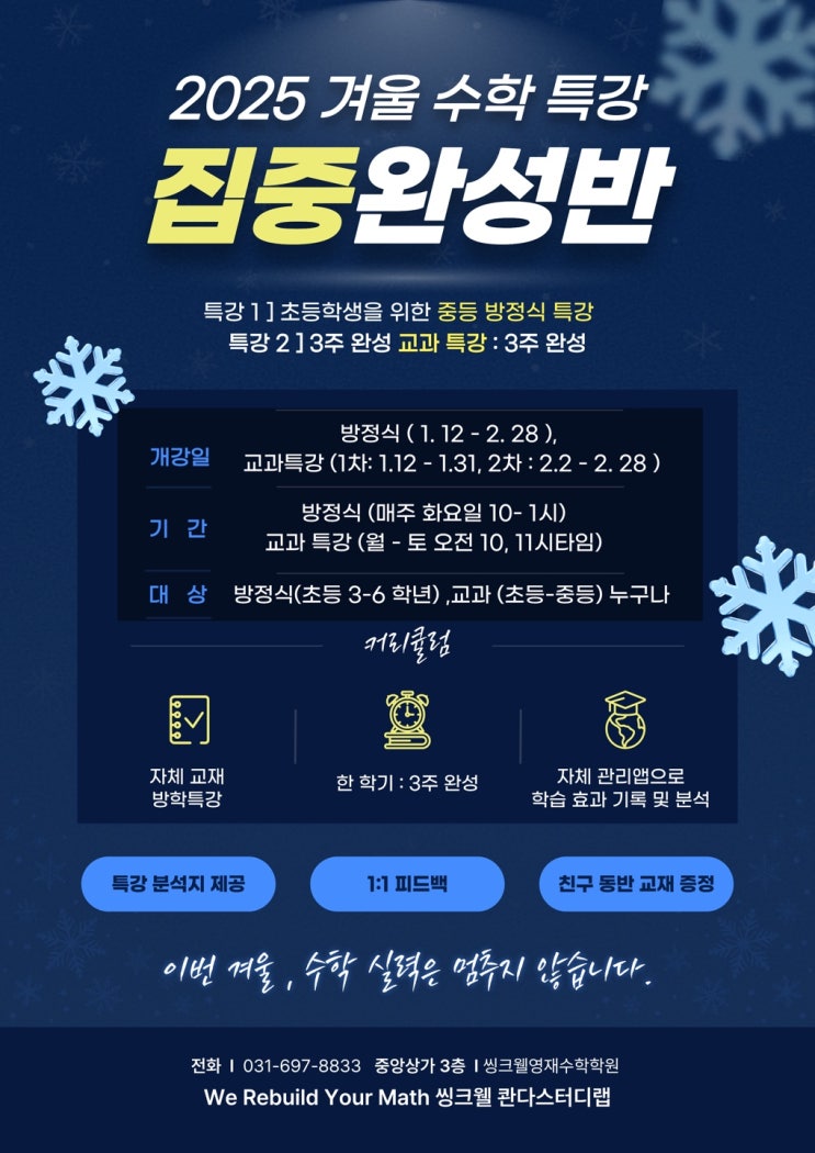 2025 겨울방학 수학 특강 개강! 방정식·교과·연산 완성반 모집 안내