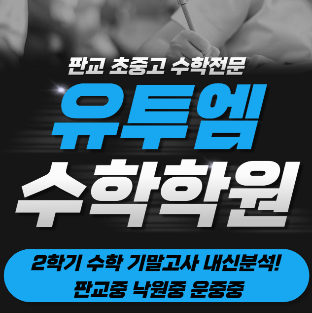 안녕하세요. 판교 유투엠수학학원 입니다^^ 판교동 수학학원 운중동 수학학원 서판교 수학학원 중학교 2학기 기말고사가 모두 끝났습니다. 이번 시험을 통해 아이들이 한 학기 동안 배운 내용을 얼마나 잘 이해했는지 또 어떤 부분에서 어려움을 느꼈는지가 자연스럽게 드러났습니다. 특히 최근 중학교 수학 내신은 단순히 계산을 잘하는 것보다, 문제를 읽고 상황을 이해한 뒤 개념을 적용하는 과정을 중요하게 보는 흐름입니다. 이번 글에서는 판교중학교,낙원중학교,운중중학교의 이번 기말고사 수학 내신을 간단히 돌아보며 시험에서 자주 등장한 유형과 아이들이 헷갈려했던 부분을 정리해 보고자 합니다. 시험 결과를 받아보신 뒤, 앞으로....... <img src="https://blogthumb.pstatic.net/MjAyNTEyMjJfMTgz/MDAxNzY2MzMyMjQxNDg0.SIuzMoTAjRSxbsNp7AXHzQxk79k_Erkii6A4M1MNl7og.s_vlkebF_46wQK82Kq12eB8lzF_076PYzvbm3gICFccg.PNG/image.png?type=s3" />