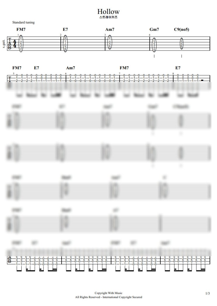 스트레이키즈 hollow 무료기타악보