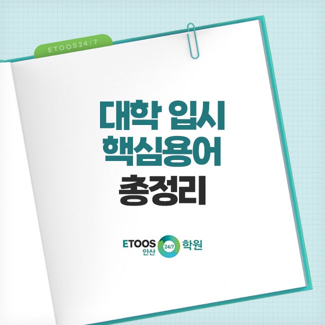 안녕하세요! 이투스247학원 안산점입니다. 대학 입시는 매년 제도와 용어가 조금씩 달라지기 때문에 기본적인 입시용어를 정확히 이해하는 것이 무엇보다 중요합니다. 특히 처음 입시를 준비하는 학생이나 학부모의 경우, 학생부 교과, 비교과, 모집단위, 미등록 충원 같은 용어가 낯설게 느껴질 수 있습니다. 하지만 이 용어들은 입시 전략을 세우는 데 핵심적인 기준이 되며, 정확한 의미를 알고 있어야 지원 대학과 전형을 올바르게 선택할 수 있습니다. 이번 글에서는 입시학원 블로그에 활용할 수 있도록 주요 입시용어를 한눈에 이해할 수 있게 정리해 드리겠습니다. 먼저 학생부 교과는 고등학교 재학 중 학교생활기록부에 기재된 교과 성....... <img src="https://blogthumb.pstatic.net/MjAyNTEyMTlfNjYg/MDAxNzY2MTA1OTQzMDM1.vXmAm7O1suKt-EWpbZylEwp1pJVEZyTtfGJzffBDIIog.zmmQHMb4Y9AF7Wa_80kItNb7vWse7OCuoxGp9Ef6m4cg.JPEG/00_%C0%CC%C5%F5%BD%BA%BE%C8%BB%EA_%C1%A4%BA%B8%BC%BA_%BA%B9%BB%E7.jpg?type=s3" />