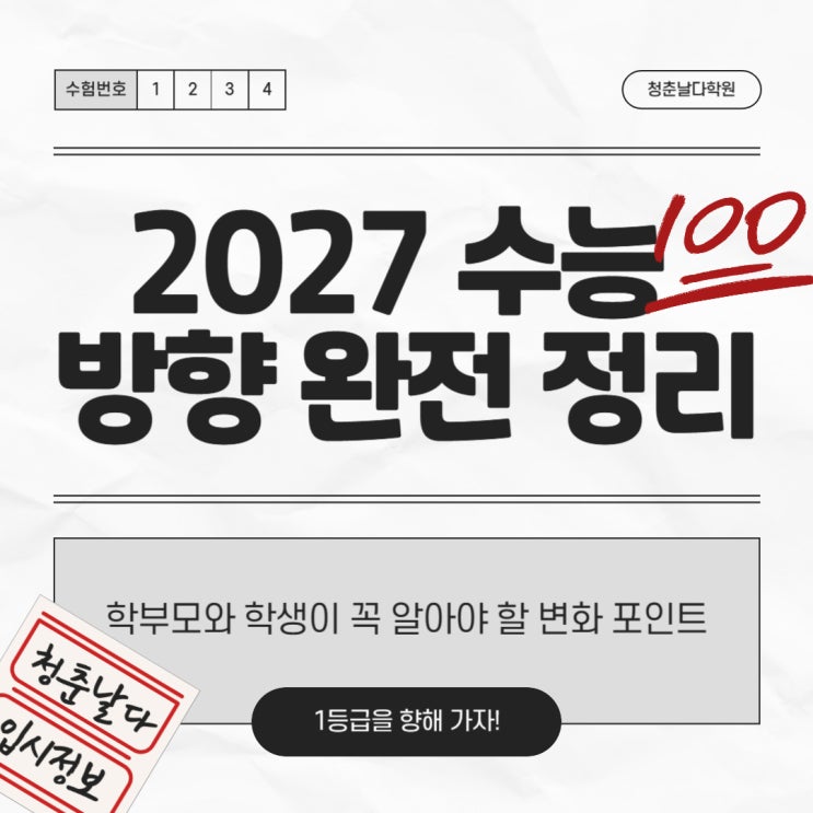 2027 수능 방향 완전 정리 [안산 고잔동 중등부, 고등부 전문 입시학원, 입시컨설팅 - 청춘날다학원]