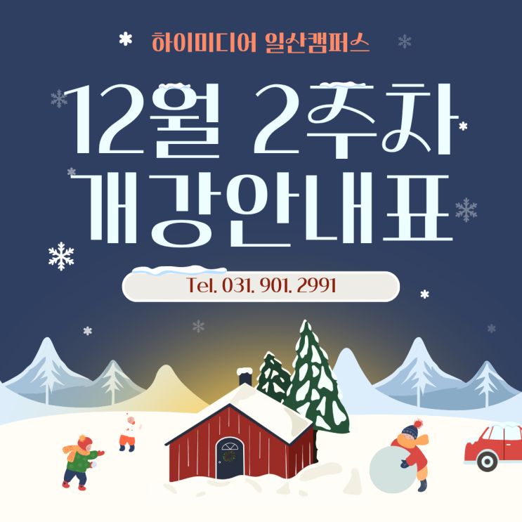 [일산|파주] 내일배움카드 국비지원 정발산역 초역세권 하이미디어컴퓨터디자인학원 일산캠퍼스 2025년 12월 2주차 개강일정표입니다.