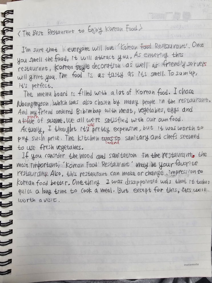 이번 포스팅은 백신중,정발중,백석중 그리고 국제중 더 나아가 국제고 ,외고를 준비하는 중학생들 위한 수업으로 수행시험도 대비하고 서술형 문제에 대비하는데 도움이 되는 영어 에세이 수업을 소개하고자 합니다. 대상은 중학교 1`2학년으로 중급 정도의 문법, 어휘력과 문법 실력을 갖춘 학생입니다. 수업 목표 문장 구성 능력 향상: 기본 문법과 어순을 익히고 자연스러운 문장을 만들기 표현력 확장: 자주 쓰이는 표현을 익히고 다양한 어휘로 바꿔보기 자신감 키우기: 실수해도 괜찮다는 분위기 속에서 발표와 피드백 경험하기 1. 교재에 나오는 에세이 읽고 이해하기 학생들과 함께 에세이를 읽고 주요 내용을 파악 모르는 단....... <img src="https://blogthumb.pstatic.net/MjAyNjAxMThfMTIy/MDAxNzY4NzI1NTg1MzM5.pmZn-m3Nf6sL9pXMh2aXGFVaPgni-XTopSifsmbJTaYg.GWyKGJKgdjORmNhu_2Ok2ERnMSNa0LVSPUqs6sU71B0g.JPEG/writing.jpg?type=s3" />
