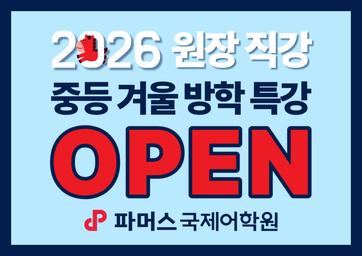 안녕하세요, 파머스국제어학원 별내브랜치입니다. 오래 기다리셨죠? 원장님의 특강은 늘 열리기도 전부터 문의가 먼저 쌓이는 수업입니다. “이번엔 언제 열리나요?” “겨울에는 꼭 듣고 싶어요.” 이런 연락을 받을 때마다 기다려 주시는 분들께 늘 감사한 마음이었습니다! 드디어, 많은 분들이 기다려 주신 준쌤의 겨울특강이 열립니다. 오랫동안 믿고 기다려 주셔서, 그리고 파머스와 함께 해주셔서 진심으로 감사합니다. 이번 특강은 그 기다림에 충분히 답할 수 있는 수업으로 준비했습니다. ❄️준쌤의 겨울특강❄️ 서술형·논술형, 이제 ‘감’ 말고 ‘틀’로 씁니다 “내용은 알았는데 점수가 깎였어요.” “조건이 바뀌면 어떻게 써야....... <img src="https://blogthumb.pstatic.net/MjAyNjAxMTVfOSAg/MDAxNzY4NDY0MzAxNTIw.g6nhOUbXJXJPIun_NQ7JdVpaE4fClEy6yPg0rB2wfoYg.nJwb-pySvCX2ejkQ1oor-ZRfeo4OgLoM9gKOgRsmaa8g.PNG/1.png?type=s3" />