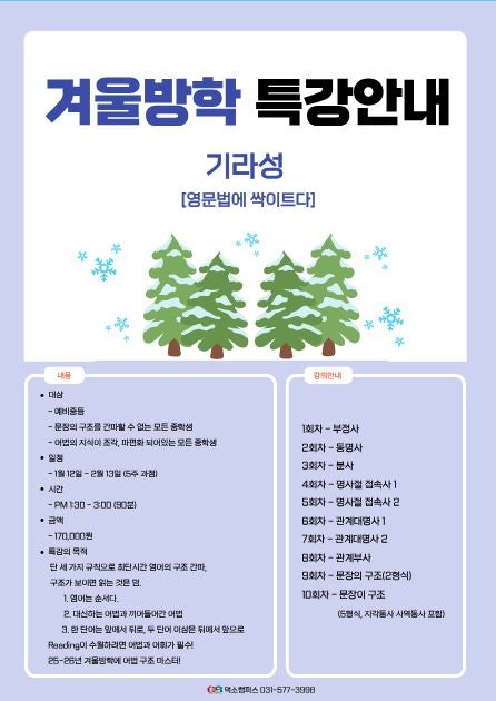 [26년 겨울방학 특강] 예비중등 / 중등반 (기라성)