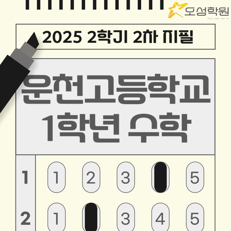 안녕하세요! 오성학원 수학 선생님입니다. 오늘은 운천고등학교 1학년 2학기 2차 지필 평가 분석을 해보았습니다. 그동안 배운 개념들을 얼마나 정확하게 이해하고 문제에 적용할 수 있었는지, 함께 문제 구성과 난이도를 하나씩 살펴보며 정리해 보겠습니다! #출제범위 운천고등학교 1학년 2학기 2차 지필 평가의 출제 범위는 명제, 함수, 유리함수와 무리함수 총 세 단원이었으며 전체 20문항 모두 선택형으로 출제되었습니다. 단원 별 문항수는 '명제' 7문항, '함수' 5문항, '유리함수와 무리함수' 8문항으로 구성되었습니다. #세부문항분석 #총평 난이도는 하 7문항, 중 8문항, 상 5문항으로 고르게 분포되어....... <img src="https://blogthumb.pstatic.net/MjAyNjAxMTdfMTEy/MDAxNzY4NjM2MjgxMDIz.weV8BGzI3Wft3rQL4Lye5qT-hYFbpiw8nTi8L713OiUg.4M46wyB376sNSnrkgEn7lpqvTpUw75Voj6Hiq_Erteog.PNG/%C7%A5%C1%F6-001_-_5.png?type=s3" />