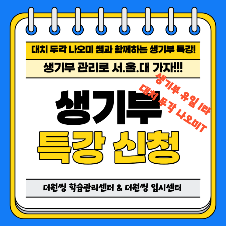 [더원씽 입시센터] 고1부터 철저히 생기부 챙겨서 서.울.대 가자!!!