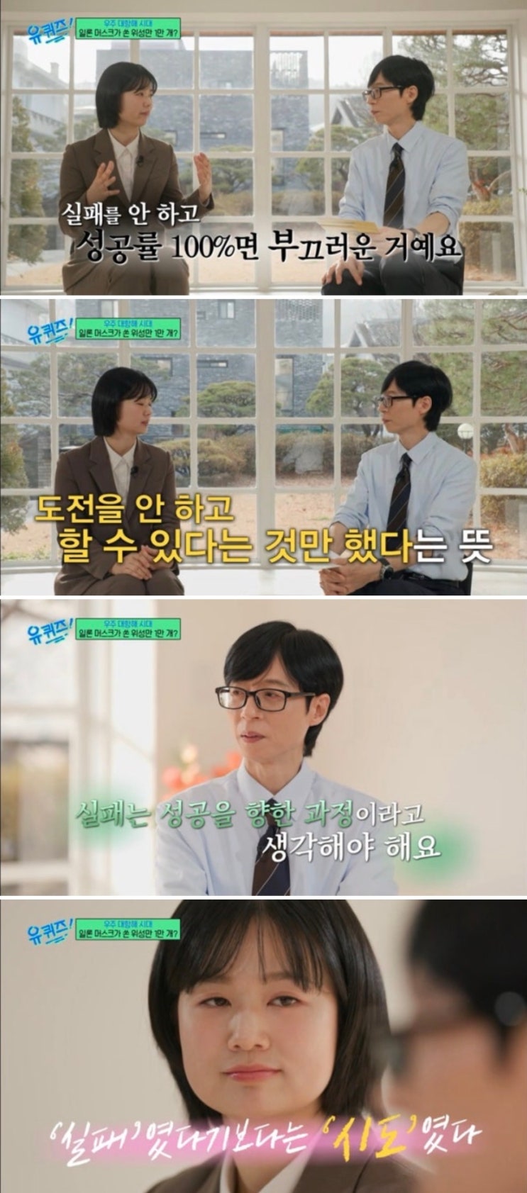 TV 채널을 돌리다가 마주친 유퀴즈 온 더 블럭. 마침 알쓸신잡을 통해서 알게 된 심채경 박사가 나오길래 채널을 고정했다. 난 '우주'에 관련된 것들에 재미를 좀 느끼는 편이라 알쓸신잡에서 심채경 박사가 하는 이야기들에 자주 솔깃했고, 굉장히 집중해서 봤었다. (다음 생에는 우주관련 공부를 해보고 싶음. ㅎㅎ) 달도 좋아해서, 종종 밤하늘을 올려다 보면서 오늘은 달이 어떤 모양인가..하기도 하고 (나의 최애는 역시 손톱달 ♥) 여하튼, 누리호, 아르테미스 프로젝트 등의 이야기를 하던 중 그 과정에서 경험한 성공과 실패를 언급하며 그녀가 한 말이 너무너무 와닿았다. 실패없이 성공만 하는 것도 경계하는 그녀의 시선.. ....... <img src="https://blogthumb.pstatic.net/MjAyNjAxMTZfNjgg/MDAxNzY4NTYyMzc2MTkz.0-G99r9PTGip5Lemp0xGAEZBLkiUc8gvrpkfgiLiRcAg.5ExrEsez6sMStaF8i_BddfRGboArEZOtOkX9IgFvFh4g.JPEG/IMG_3462.jpeg?type=s3" />