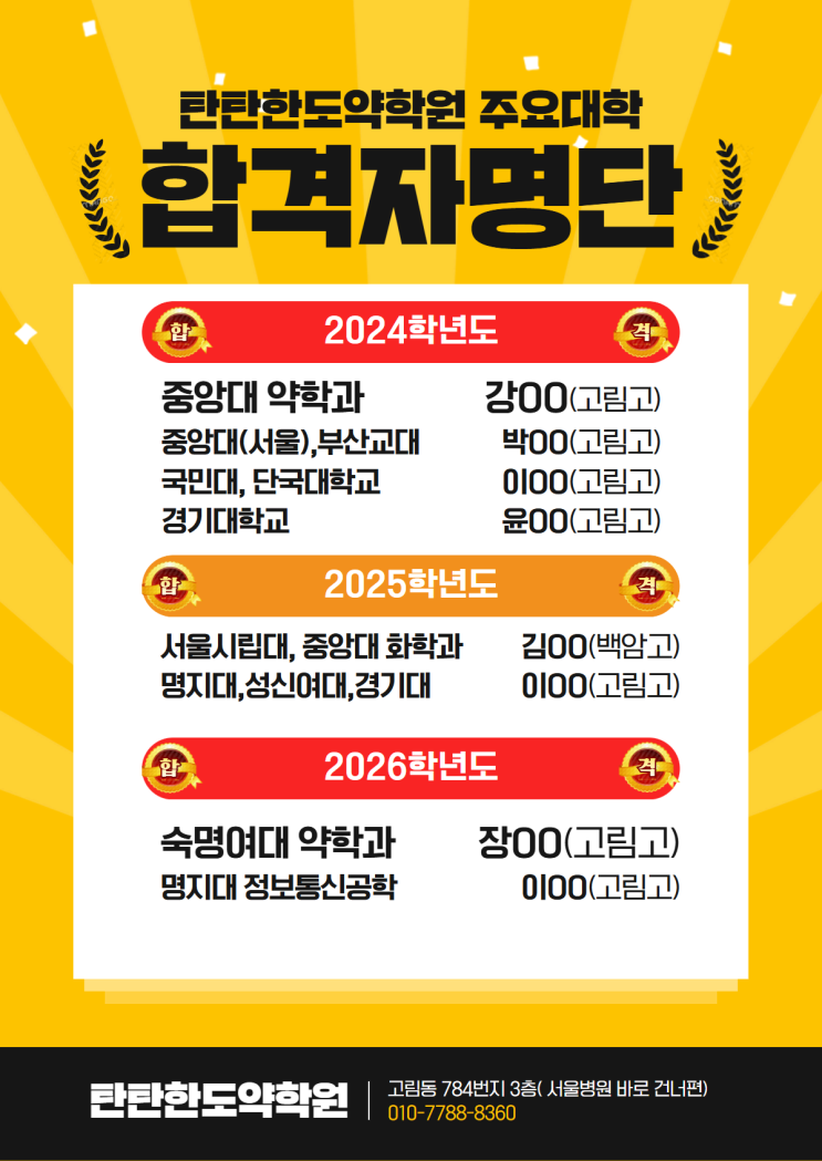탄도학원 주요대학합격자
