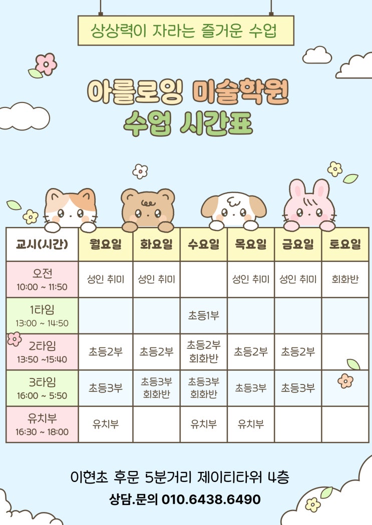 아이들이 미술을 단순히 “그리기”로만 배우고 있진 않나요? 저희 아를로잉 에서는 아이들이 즐겁게 표현하면서 자연스럽게 창의력과 자신감을 키울 수 있는 창의미술 수업을 진행하고 있습니다 단순 반복이 아닌, 다양한 표현 활동을 경험합니다. ✔ 매달 진행되는 ‘작가 수업’ 유명 작가 스타일을 아이들 눈높이에 맞게 재해석하여 드로잉 또는 만들기로 확장됩니다. ✔ 놀이처럼 즐기는 수업 분위기 아이들이 지루해하지 않고, 매 수업을 기다리게 됩니다 1~3주: 드로잉 수업 - 기초 표현력 + 창의적 사고 확장 4주: 만들기 수업 - 입체 활동으로 표현력 강화 작가 수업 포함 - 드로잉 또는 만들기 형태로 진행 - 아이들이 자연스럽게 미술....... <img src="https://blogthumb.pstatic.net/MjAyNjAzMzBfNTcg/MDAxNzc0ODQ5ODIyMjAx.ogufj85KFZv25UaRUH7g-XKBi8ynNCPPGfat2oCVJ0gg.uY73IiuNPc8Bcv-B03pwHBIFwkBBjlYUe12aVHLMJwsg.JPEG/%C1%A6%B8%F1%C0%BB-%C0%D4%B7%C2%C7%D8%C1%D6%BC%BC%BF%E4_-001.jpg?type=s3" />