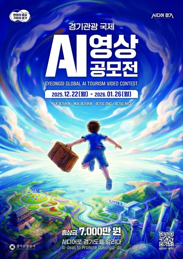 안녕하세요 씨큐브코딩 용인수지센터입니다 AI 실력을 발휘할 수 있는 좋은 공모전을 안내 드리니, 생성형 AI를 활용한 창의적인 영상 제작에 관심 있는 분들의 많은 참여 바랍니다 2025 경기관광 국제 AI 영상 공모전 ✅ 참가 자격: 경기관광에 관심을 가지고 있는 누구나 개인 또는 팀(최대 3인) 구성하여 참가 가능 팀 참가 시 대표자 1인만 출품 ✅ 공모 주제 (1) 국내 경기관광 : 생성형 AI를 활용하여 제작한 내국인 타깃의 국내 홍보용 영상 (2) 해외 경기관광: 생성형 AI를 활용한 외국인 타깃의 해외 홍보용 영상 [언어 요건] 영어, 중어(간체/번체), 일어 등 외국어 필수 적용 영상 내 음성 또는 자막 중 1개 이상 외국어 사용 제3국어....... <img src="https://blogthumb.pstatic.net/MjAyNjAxMDNfMjYx/MDAxNzY3NDE0ODQxMDQx._LhJwGxb9gQSGRHEutatQpr-Mxr8EoVOdyDpQewDGWQg.7qm0moCksVrRLTn21jVuuinZM6NRbddvZPMZOuQHkWog.JPEG/ai영상공모전.jpg?type=s3" />