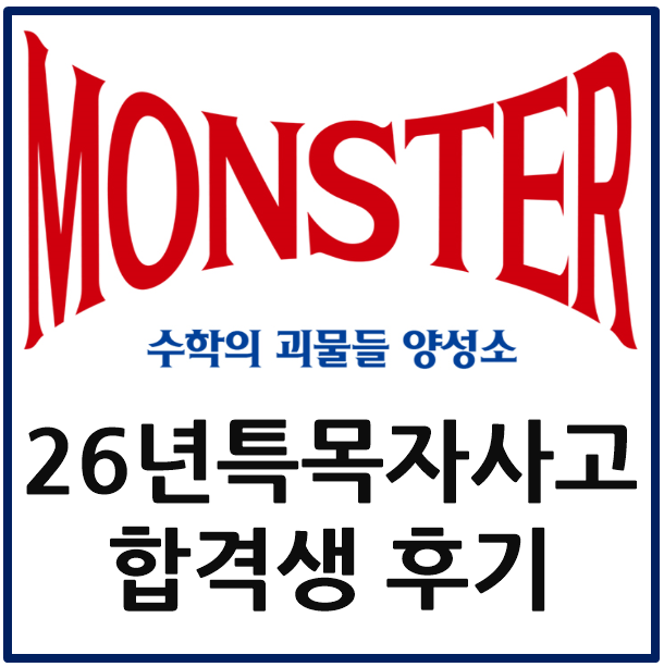 안녕하세요 기출분석과 설명회 맛집에서 이젠 특목 자사고 합격 맛집으로 거듭난 몬스터 수학학원입니다. 이번 26학년도에 특목 자사고에 입학하는 몬스터 출신 학생들의 후기 조사입니다. 특목 자사고에 관심이 있는 분들이 보기에 좋은 후기 같아서 포스팅을 하겠습니다. 이것이 진정한 후기입니다. 그럼 어떤 고등학교를 희망하던 중학교 때 최대한 열심히 공부를 하고 싶고, 최대한 많이 공부를 시켜야 할 것 같으면 어서 빨리 몬스터수학학원으로 문의를 주시기 바랍니다. 031-263-8209 (빨리공부) P.s 수학의 핵심은 오답관리입니다. 다들 아시쥬? #특목고 #자사고 #수지구 #수지지역 #외대부고 #북일고 #특목고 #수원외고 #안양외고 #몬스....... <img src="https://blogthumb.pstatic.net/MjAyNjAxMDhfMjUg/MDAxNzY3ODUzODI5OTg2.48HCYEIM4V3H10nna9FEMNIU5Yf6sZXQqxhRI2j2j7Qg.yMSV7uTgRZjK8Nb24wEepWKbGC4xl0N2WQrNmrBb8IAg.PNG/%BD%BA%C5%A9%B8%B0%BC%A6_2026-01-08_142804.png?type=s3" />