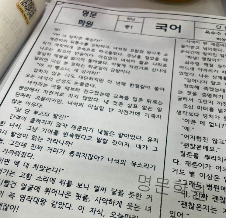 안녕하세요? 구래동에서 국영수를 지도하고 있는 명문학원입니다. 초등학생들 한 달 뒤면 중학생이 되는데 이전까진 괜찮다가 갑자기 글을 이해하지 못한다는 말을 하는 아이들이 많아집니다. 문제를 읽고도 무슨 말을 하는지 모르겠다고 하고, 지문을 끝까지 읽어도 핵심이 뭔지 찾아내질 못합니다. 이런 고민은 비단 이 글을 읽고 계신 나래중 1학년 학부모님 자녀만의 고민이 아닙니다. 정말 많은 학생들에게서 보이는 문제점입니다. 이런 경우 대부분은 아이의 문해력 자체에까지 다가가서 접근하기보단 아이의 어휘력을 점검해 보실 필요가 있습니다. 대개 어휘력이 받쳐주지 못하는 상황에서 시작되는 문제이기 때문입니다. 그렇다면 내 아....... <img src="https://blogthumb.pstatic.net/MjAyNjAyMDNfMjEz/MDAxNzcwMTEwMjA3MTI4.mlYMMHqeZG7UEuaQZdgWLM3B2sZjE_tvFP27E8wZz-0g.Ftpl_WbkUrSKMEfIjIuiwADBa2axJzs6XEro8I1uxNMg.JPEG/IMG%A3%DF6790.jpg?type=s3" />