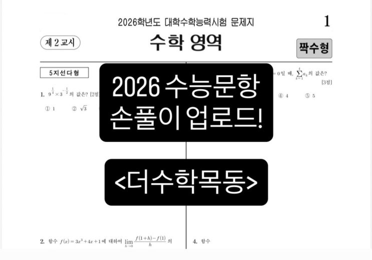 걸포동수학학원 더수학목동 / 2026수능 수학영역 총평, 킬러문항분석, 전문항 손풀이 (표준점수, 원점수)