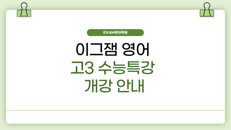 이그잼 영어 고3 수능특강 개강 안내 _ 김포 장기동 영어학원