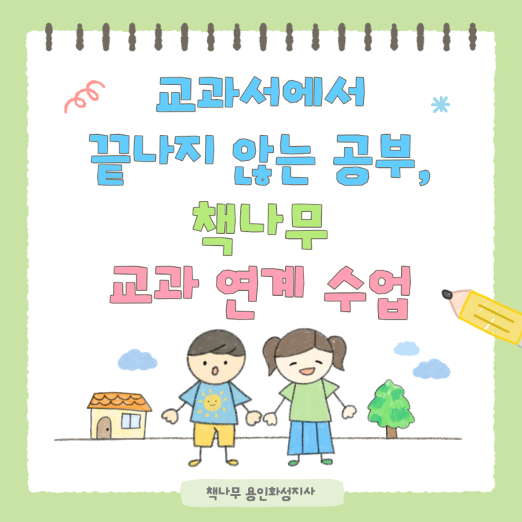 안녕하세요. 아이들의 생각하는 힘을 키우는 독서코칭, 책나무 용인화성지사입니다. 아이들이 학교에서 배운 내용이 시험을 위해 잠깐 머무는 지식으로 끝나지 않고, 스스로 생각하고 확장하는 배움이 되려면 무엇이 필요할까요? 책나무는 그 답을 '교과와 연결된 독서 활동’에서 찾고 있습니다. 책나무의 교과연계 독서란? 책나무의 교과연계 수업은 학교 교과서의 흐름을 바탕으로 아이들이 책을 통해 배운 내용을 다시 만나고, 활동을 통해 '이해 → 생각 → 표현'으로 확장하는 수업입니다. 단순히 교과 내용을 반복하는 것이 아니라, 책 속 이야기와 정보 속에서 아이 스스로 질문하고 생각해보는 힘을 기르는 것이 목....... <img src="https://blogthumb.pstatic.net/MjAyNjAxMDlfMTIz/MDAxNzY3OTUwMDg3OTEx.-vw6Zj0kzrmloZofSJIHHQ45cBshxagebF02pqDW1T4g.EAM3iXPeSPH2S1IiK5TIdXI6fNPHo0sajnpWTMj8ElIg.PNG/19.png?type=s3" />