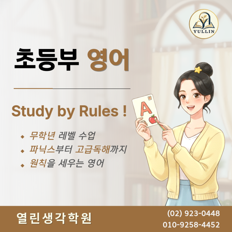 안녕하세요, 열린생각학원 초등부 담당 영어쌤입니다. 저희 학원에서는 정기적으로 원장님과 초·중·고 영어 선생님들이 함께 수업 흐름과 결과를 점검하는 시간을 갖고 있는데요. 수업이 끝난 뒤 아이들의 반응을 공유하고, 숙제·테스트·오답을 같이 보면서 각 단계에서 어떤 공부가 추가적으로 요구되어야할지를 이야기하고 있습니다. 그런 대화와 피드백이 쌓이면서, 저희가 반복해서 확인하게 된 핵심 이 하나 있었습니다. 바로 초등학교 때부터 영어를 올바르게 독해하는 습관을 잡아야한다. 는 것입니다. 그래서 저희 학원에서는 초등 영어를 완전한 무학년 레벨 수업으로 운영하되, 그 중심을 " 원칙을 세우는 영어" 에 두기로 했....... <img src="https://blogthumb.pstatic.net/MjAyNTEyMzFfMzQg/MDAxNzY3MTg4OTQ5NzQ4.RgE9Zm2fFRAlh6CY9uXKTpVf55Uju9ED03GcgRUI2Lsg.Ek97SzO-PCt-GCrCnnjeomxl6Y8v8R5ZZZ5y3UvXmyIg.PNG/%C1%A6%B8%F1%C0%BB_%C0%D4%B7%C2%C7%D8%C1%D6%BC%BC%BF%E4_%2811%29.png?type=s3" />