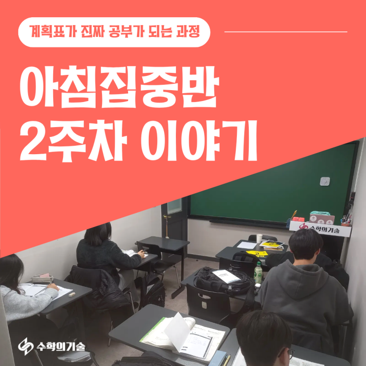 안녕하세요. 중계동 수학학원 수학의기술 은행사거리점입니다 1월 5일 시작한 아침집중반이 어느덧 2주차에 접어들었습니다. 학부모님들께 “요즘 아이들이 아침에 어떻게 공부하고 있는지”를 차분히 공유드리고 싶어 이렇게 글을 남깁니다. 2주차, ‘아침을 지키는 힘’이 보이기 시작했습니다 방학 기간임에도 오전 8시부터 11시까지 스스로 시간을 지키며 등원하는 아이들의 모습이 참 인상적입니다. 처음에는 “일찍 오기만 해도 대단하다”는 마음이었다면, 2주차부터는 한 단계 더 나아가 자리에 앉자마자 흐트러짐 없이 루틴에 들어가는 모습이 눈에 띄게 많아졌습니다. 아침 시간은 컨디션이나 마음가짐에 따라 집중력이 크게....... <img src="https://blogthumb.pstatic.net/MjAyNjAxMTRfNDgg/MDAxNzY4MzgzNzQyNzc3.-5wHIvV5MaoWcv4i7o3QZ3gLcQ1uHqwrk510ZLvGkW4g.EKCODPFo7p13zMDCu9VCEiMMOo0zyJrg7NirK37MjzQg.PNG/1.png?type=s3" />