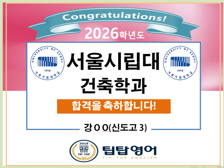 합격을 진심으로 축하드립니다. 은평구 영어학원, 진관동 영어학원, 구파발 영어학원, 팁탑(Tip-Top)영어학원, 은평뉴타운 영어학원, 진관고 영어, 신도고 영어, 은평고 영어, 대성고 영어, 동명여고 영어, 대동세무고 영어, 대성중 영어, 진관중 영어, 신도중 영어, 선정고 영어, 선일여고 영어, 지축중 영어 영어내신 대비, 진관동 중등 내신영어 진관동 고등내신영어 대학입시 컨설팅 고등입시 컨설팅 자소서 첨삭 및 면접대비 전문가 <img src="https://blogthumb.pstatic.net/MjAyNjAxMTJfMTQ1/MDAxNzY4MTk3NjgwOTk4.zv6lX77E0TvYCnaz0E3VvsvaA5hRAeh8sFJ5sVdHDLcg.mlR3OGNk67ghKWLofvbbG1uQbUX2ezyV61H7bx4EGaUg.PNG/%B0%AD%BC%AE%BF%F8.png?type=s3" />