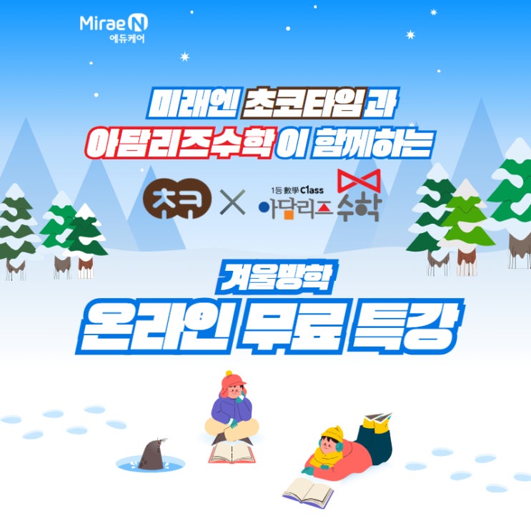 [미래엔 초코 × 아담리즈수학 온라인 무료 특강 안내] 안녕하세요! 아담리즈수학 본사 미래엔에듀케어 입니다! 겨울방학은 아이의 학습 흐름을 다시 정비할 수 있는 중요한 시기입니다. 하지만 긴 방학 동안 학습 리듬이 무너지거나, 단순 반복 학습에만 머무르기 쉬운 것도 사실입니다. 이번 겨울, **미래엔 초코와 아담리즈수학이 함께 준비한 「겨울방학 온라인 무료 특강」**은 짧지만 밀도 있게 사고력의 방향을 바로 잡아주는 프로그램입니다. [미래엔 초코 × 아담리즈수학] 미래엔 초코는 다년간의 교육 콘텐츠 노하우를 바탕으로 아이 눈높이에 맞는 학습 경험을 설계해온 브랜드이며, 아담리즈수학은 유아·초등 사고력 수학 분야에서 교....... <img src="https://blogthumb.pstatic.net/MjAyNjAxMTRfODcg/MDAxNzY4Mzc4NDIxODIx.RxQgASAst8jzz-PPblxYW0CGayVW6wi_iZKI5DbSLu8g.sMkQKcC9Npl0N8AhvlB9TRy3impoNWCxglyOixY8d8Ag.JPEG/%C3%CA%C4%DA%B0%DC%BF%EF%C6%AF%B0%AD_%BA%ED%B7%CE%B1%D7_1.jpg?type=s3" />
