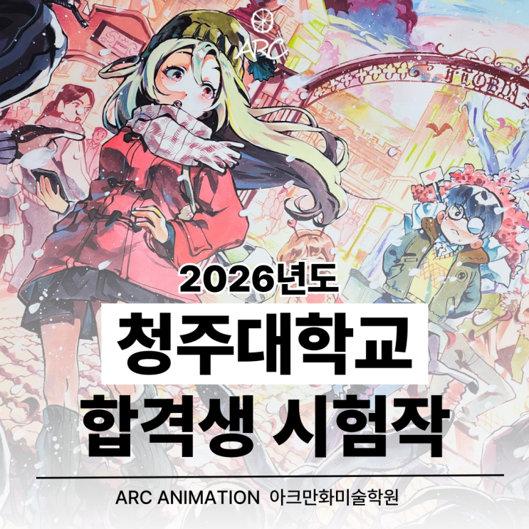 안녕하세요! 압도적 합격, 독보적인 실기력으로 승부하는 포항 ARC애니미술학원 입니다. 청주대학교 만화애니메이션학과는 충북 청주캠퍼스 예술대학에 소속된 4년제 예체능 계열 학과로, 만화·애니메이션·디지털 콘텐츠 제작 전반을 실습 중심으로 교육하는 전공입니다. 드로잉과 캐릭터 디자인을 기초로 2D/3D 애니메이션, 웹툰, 영상·콘텐츠 제작 등 창작 전 과정을 폭넓게 다룹니다. 청주대 만화애니메이션과 졸업생의 진출 분야는 - 웹툰·출판만화 작가 - 2D/3D 애니메이터, 영상·모션그래픽 계열 - 게임 그래픽 및 콘텐츠 제작 분야 - 미디어·디지털 콘텐츠 기획 및 제작 등으로 다양합니다. 오늘은 2026년 청주대 수시에 합격한 입시반 학....... <img src="https://blogthumb.pstatic.net/MjAyNjAxMjBfNjMg/MDAxNzY4OTAzNzkxMDkz.pi3kLuxJ55Dw4ONjS3fX6UZZNqzmqZurhlM6pAiWl3Qg.5U4G-Fl8YrVyq1bEMhTtW9MfqYCgbTGS1jaWzrA9kIQg.PNG/%C1%A6%B8%F1%C0%BB-%C0%D4%B7%C2%C7%D8%C1%D6%BC%BC%BF%E4_-001.png?type=s3" />