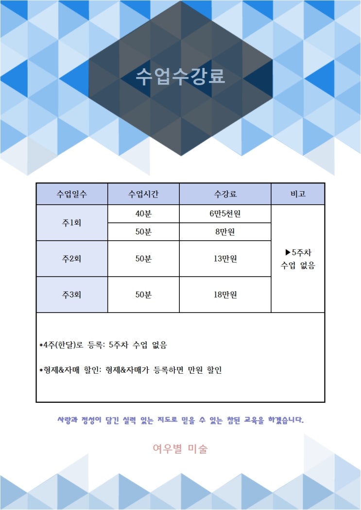 여우별미술교습소 수강료