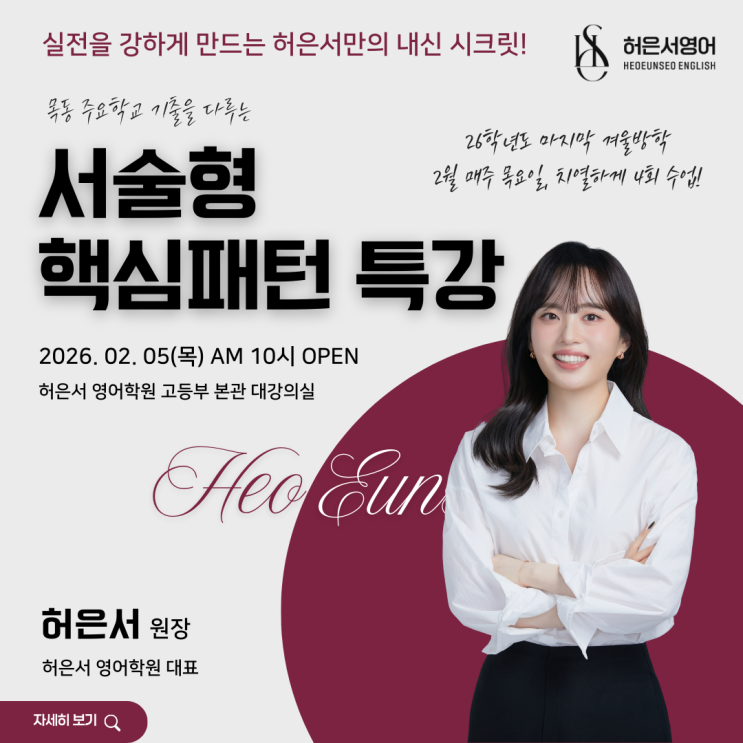 목동 서술형 특강|2월 : 허은서 서술형|중ㆍ고등 신학기 내신 대비<중등부 마감임박>