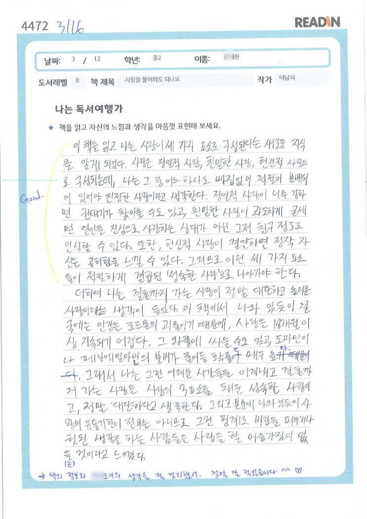 리드인 독서논술학원 (리드인 숭실대점) 2026년 4월 글쓰기 시상