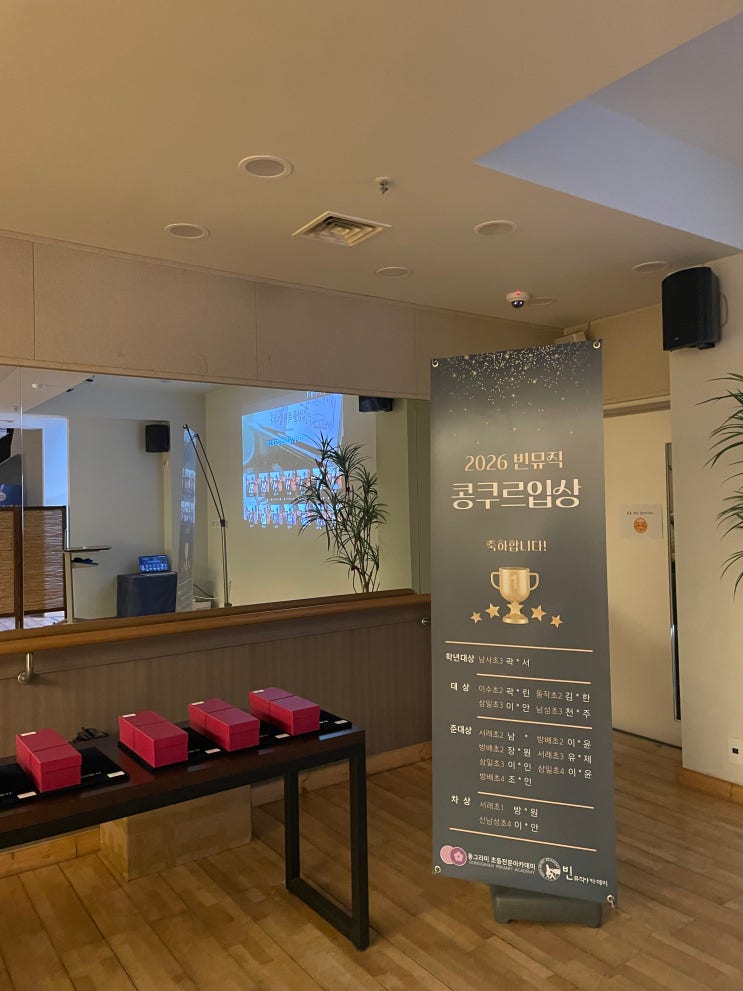 2026년 1월에 참가했던 중앙음악신문사 음악콩쿠르에 입상한 학생들을 대상으로 상장과 트로피 시상식을 진행하였습니다. 특히 이번 콩쿨에서 학년대상과 대상을 받은 학생들은 주최 측 장학금도 함께 수여되었습니다. 열심히 연습하고 무대에서 최선을 다한 결과가 이렇게 좋은 결실로 이어져 매우 기쁩니다^^ 아이들도 서로 축하해주고 사진도 찍으며 즐거운 시간을 보냈답니다~~ 앞으로도 아이들이 음악에 대한 자신감과 성취감을 이룰 수 있도록 다양한 기회를 만들어가고자 합니다. 다시한번 입상한 모든 빈뮤직 학생들에게 축하를 보냅니다♥ <img src="https://blogthumb.pstatic.net/MjAyNjAzMDNfMjMg/MDAxNzcyNTI0MzY3Mzc0.7_Nay3mbBfHu8v1rILSmjapk1zIG_YvE4ngm0hZ0zykg.Uu-oXDQTNHG1LFDhRiUHRiOFHLDp7TkCEtk4zu5funEg.JPEG/KakaoTalk_20260303_160358652_19.jpg?type=s3" />