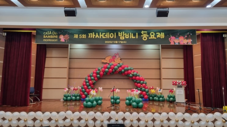 2025년 12월 17일 수요일 "까사 데이 밤비니" 동요제가 올해로 5회째를 맞이하였습니다. 밤비니 동요제는 4세 ~ 7세 총 33명 어린이들의 독창, 합창 무대로 이루어져 있습니다. 1부의 시작은 4세, 5세 어린이들 합창 2부의 시작은 6,7세 어린이들의 합창 2부의 마지막은 7세 어린이들의 합창 3부의 마무리는 5세 ~ 7세 어린이들과 교사들의 합창이었습니다. 그리고 29명 어린이들의 독창이 1부 ~ 3부로 나뉘어져 있습니다. 물론, 동요제 시작 전 입구에 마련된 포토존에서의 촬영도 잊지 않았답니다. 밤비니 동요제는 다른 어른이집이나 유치원의 '재롱잔치'와는 어떤 차이가 있을까요? 밤비니 동요제에서는 어린이가 부르고....... <img src="https://blogthumb.pstatic.net/MjAyNTEyMThfMjgz/MDAxNzY2MDE3NDM0MDMx.bk9MFqERhG_x8spUiwsIm7o2eizCNxX305y5p8saw0Eg.KwNyC7rHZepQgajOcCj99fG57wyoFslI5YyV5utnHPMg.JPEG/900%A3%DF20251217%A3%DF111234.jpg?type=s3" />