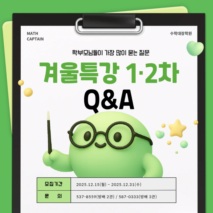 [방배동 수학대장] 2026년 수학겨울특강 1·2차 Q&A