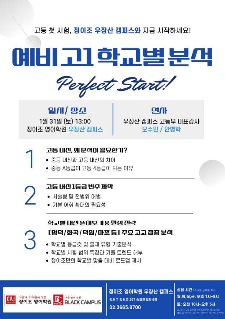 [정이조우장산]1월 31일, '고등학교별 분석' 긴급 설명회!