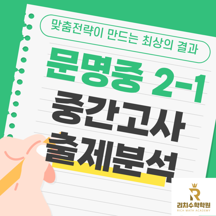 안녕하세요 경산 사동 초등부터 중등,고등 수학까지 사고력,내신,심화,수능,선행 모든 수학은 리치수학학원에서!! 문명고등학교? 전통 있는 명문학교로 거듭나기 위해 항상 노력하는 학교입니다 선생님들의 열정이 대단하시며 요즘 시험 출제 경향이 갈수록 어려워지고 있습니다 어려워지는 지금! 시험 분석을 통해 불안함을 줄여볼까요? 오늘은 [2025년 문명중학교 2-1 중간고사] 시험을 분석해보겠습니다 리치수학학원 입시 결과는?? 시험 범위는?? 1. 유리수와 순환소수 2. 단항식과 단항식 3. 부등식 시험 범위는 1~3단원까지 출제되었으며 부등식은 단원의 비율이 높게 출제 되었으며 부등식 활용 비중이 높아서 시험 난이도가 높은 편입니....... <img src="https://blogthumb.pstatic.net/MjAyNjAxMzFfMjU1/MDAxNzY5NzkxMDQxMjg4.tLM_ON8P0UhZxYuAPDJbjgLopf20eLJSsad-fIHVPacg.qLonyUIoLqJXyb9pGmXHRDozLl88esG5F20IIf_VUzcg.PNG/%B0%E6%BB%EA%BC%F6%C7%D0%C7%D0%BF%F8_%C7%A5%C1%F6.png?type=s3" />