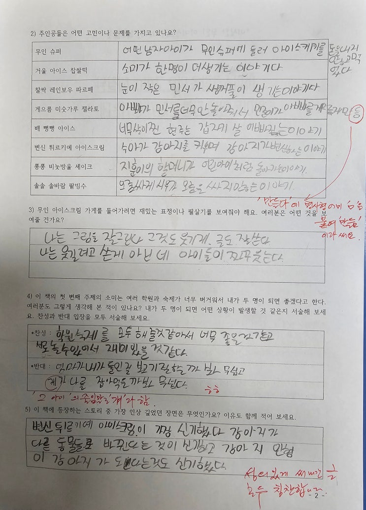 『이상한 무인 아이스크림 가게』 책 소개 및 독후 활동