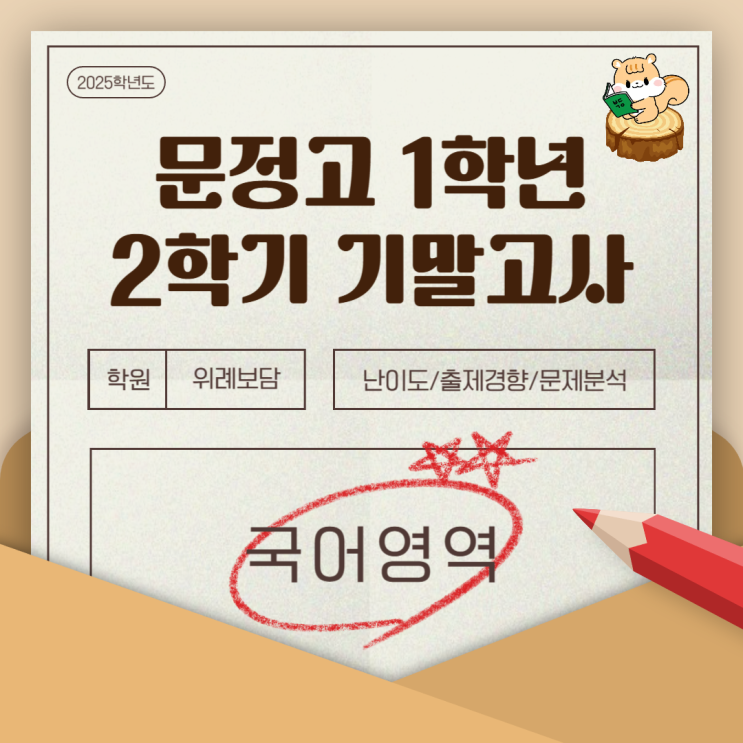 안녕하세요. 위례 보담 국어 학원입니다. 이번에도 모두들 기다리실! 25년 2학기 기말고사 시험지 분석을 가지고 왔어요! 오늘은! 문정고 시험지 분석을 진행하고자 합니다- 우선, 문정고 1학년 2학기 국어 기말고사 시험지 분석을 올려 볼게요:) 문정고 1학년을 담당하고 계신 안성정 강사님의 총평! 시와 소설 협상하기 단원은 비교적 기본 개념과 그에 따른 상징성과 구절 풀이만 잘 익혔다면 큰 무리 없이 잘 해결할 수 있었을 것으로 짐작됨. 협상하기는 말하기 방식과 협상 순서를 잘 정리했다면 어렵지는 않았지만 <보기>에서 기호를 찾는 문제가 있어 다소 헷갈렸을 수는 있었기에 문제를 꼼꼼하게 읽는 습관이 필요한 단원이었음....... <img src="https://blogthumb.pstatic.net/MjAyNTEyMzBfMTE1/MDAxNzY3MDc2NjA3MjEy.inkyuhvwqHuhINu3d0sq_dOIcLYV-_cSZQHK1sPH1VQg.OR_4bKane5ZOynFzUQ-4w3Tkr3FfcQc8b6rRx0MYTtMg.PNG/%B9%AE%C1%A4%B0%ED1.png?type=s3" />