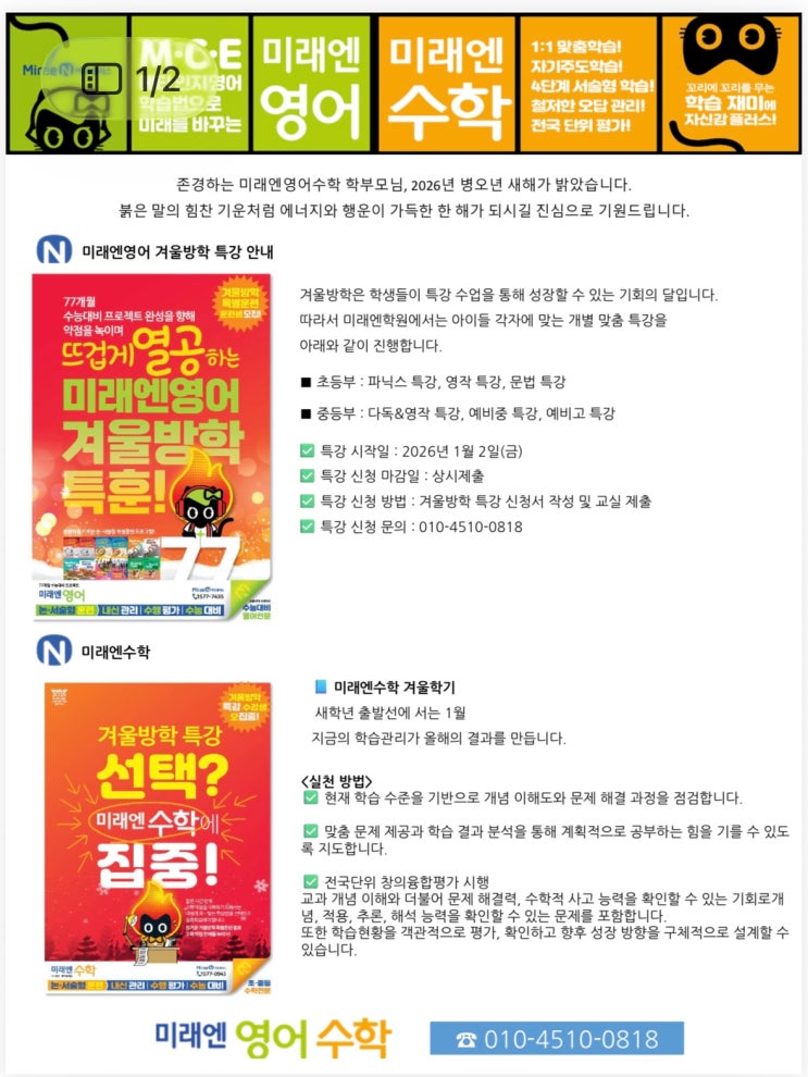 [겨울 방학 특강] ▲ (선택 1) 수능국어문법 실전편 - 개강: 26년 1월 8일(목), 9일(금) 1시 개강 - 기간: 4주 완성 - 내용: 단어, 문장 중심 총정리 - 대상: 고1 미수강생, 고2 전원, 고3 언매 선택생 - 담당: 백승수 쌤 ▲ (선택 2) 고전시가 기초편 - 개강: 26년 1월 9일(금) 1시 개강 - 기간: 4주 완성 - 내용: 고대가요, 신라향가, 고려가요, 시조까지 총정리 - 대상: 고1~3 미수강생 - 담당: 김규헌 쌤 ▲ (선택 3) 고전가사 총정리편 - 개강: 26년 1월 8일(목) 1시 개강 - 기간: 4주 완성 - 내용: 필독 고전가사 16편, 수능식 총정리 - 대상: 고2, 3 미수강생 - 담당: 김규헌 쌤 * 정규반과 별도로, 필요한 과정을 선택해서 수강하면 됩니....... <img src="https://blogthumb.pstatic.net/MjAyNTEyMTlfMjU2/MDAxNzY2MTQwNzMzNjE3.A0qsPp91IC4bbBy9NikjCjr-yVcvGaouP4aP1-v42-gg.ItsYKRfgahWkGUNS-R7BNlcQA6NgCsJDvQ6D7xB76Twg.JPEG/%B0%DC%BF%EF%B9%E6%C7%D0%C6%AF%B0%AD_2026_%B0%A1%BB%E7%C3%DF%B0%A1-001_%281%29.jpg?type=s3" />