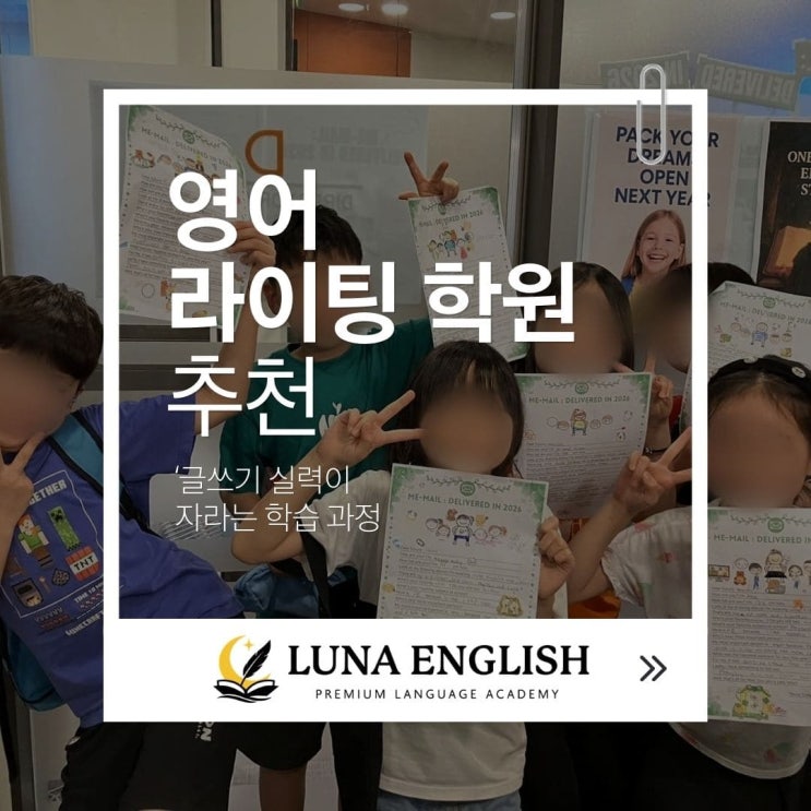 영어 공부를 오래 했지만 막상 영어로 글을 쓰려고 하면 문장을 시작하는 것부터 어려워하는 학생들이 많습니다. 단어를 알고 문법을 배웠어도 생각을 영어 문장으로 정리하는 경험이 부족하면 라이팅은 쉽게 늘지 않기 때문입니다. 그래서 영어 학원을 선택할 때 중요하게 보는 영역 중 하나가 바로 영어 라이팅 학원입니다. 영어 라이팅은 단순히 문장을 많이 쓰는 훈련이 아니라 생각을 정리하고 표현하는 과정 속에서 언어 구조를 이해하는 학습이기 때문입니다. 잠실 지역 초등·중등 학생들이 다니는 루나잉글리쉬에서는 읽기와 말하기 경험을 바탕으로 자연스럽게 글쓰기 능력을 키울 수 있도록 단계별 라이팅 수업을 운영하고 있습니다. 이....... <img src="https://blogthumb.pstatic.net/MjAyNjAzMDRfMTQ0/MDAxNzcyNjEzOTMyMzM4.8E-8J5zwP6SKPqHsBF10DTI1uJ5Yuv9FH2VV5z2OmvEg.hSGF5x3C0zl9B5ecJyJOCQz0yII0ZJdUoD_PXIjhAXkg.JPEG/%BF%B5%BE%EE_%B6%F3%C0%CC%C6%C3_%C7%D0%BF%F81.jpg?type=s3" />