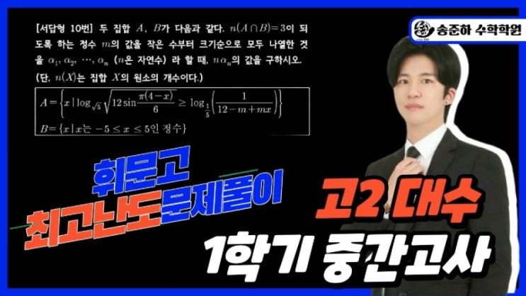 안녕하세요! 최고의 대치동수학학원 송준하수학학원입니다! 하루 1문제씩 꾸준히 매일 공부합시다! 2025년 휘문고 고2 수1(대수) 1학기 중간고사 최고난도 문제풀이 오늘은 휘문고 고2 수학1(대수) 1학기 중간고사 최고난도 문제를 준비했습니다! 풀어보시고 해설을 들어보세요! 항상 좋은 강의로 보답하겠습니다! <해설 풀강의> <손풀이> #수1 #내신대비 #대수 #지수로그함수 #삼각함수 #문제풀이 #대치동 #대치동수학학원 #대치동내신대비 #대치동수능대비 #휘문고 #중동고 #보인고 #영동일고 #중대부고 #단대부고 #진선여고 #경기여고 #경기고 #반포고 #보성고 #세화고 #세화여고 #중간고사 #기말고사 #수학1등급 #고교학점제 #수....... <img src="https://blogthumb.pstatic.net/MjAyNjAzMDVfMTgg/MDAxNzcyNjg5OTAzNzY1.Qmw5Dy59vShGIEbI_Jjazz0Ughr7o_dk0ABSX4yxl_Ag.a0j_IKGGpqb5VOmruNHQgya8TVo0BHwNPQ0XFtor_8og.JPEG/900%A3%DF%C8%D6%B9%AE%B0%ED_%C3%D6%B0%ED%B3%AD%B5%B5_%B0%ED2_%B4%EB%BC%F6%A3%ADCover.jpg?type=s3" />