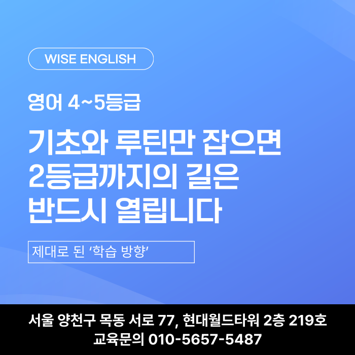 양천구목동영어 4~5등급, "기초와 루틴만 잡으면 2등급까지의 길은 반드시 열립니다"