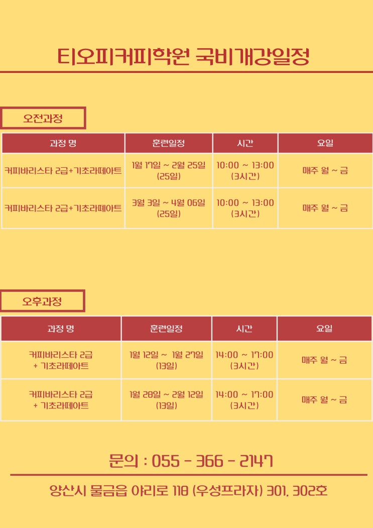 2026년 커피바리스타 국비교육과정 개강일정 ![양산커피학원,양산바리스타학원]
